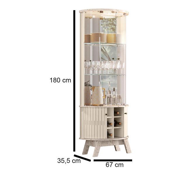 A Cristaleira Marina da 7 Decor é a escolha perfeita para quem deseja valorizar objetos decorativos, louças ou cristais com sofisticação, leveza e design refinado. Com portas e laterais em vidro, iluminação em LED, espelho interno e acabamento curvo, ela se destaca como peça decorativa e funcional em salas de estar, jantar ou halls.