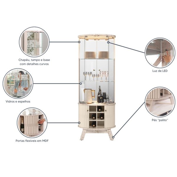 Com estrutura leve, iluminação funcional e acabamento cuidadosamente trabalhado, a Cristaleira Marina transforma qualquer ambiente em um espaço sofisticado, organizado e acolhedor.