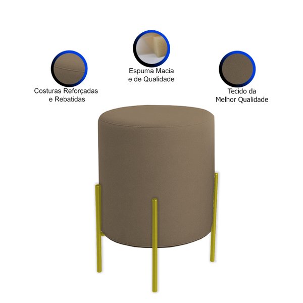 Revestido em tecido Bouclé, que confere textura macia e aspecto visual acolhedor, o puff proporciona um toque de sofisticação à decoração. Os pés de ferro com pintura Dourado garantem resistência e um contraste moderno, valorizando ainda mais o design orgânico da peça.