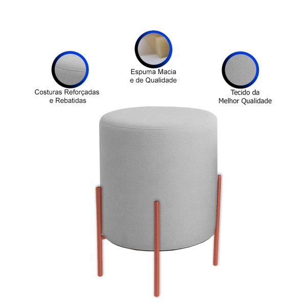 Revestido em tecido Bouclé, que confere textura macia e aspecto visual acolhedor, o puff proporciona um toque de sofisticação à decoração. Os pés de ferro com pintura Rosê garantem resistência e um contraste moderno, valorizando ainda mais o design orgânico da peça.
