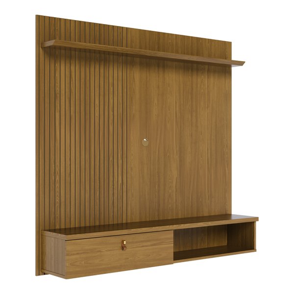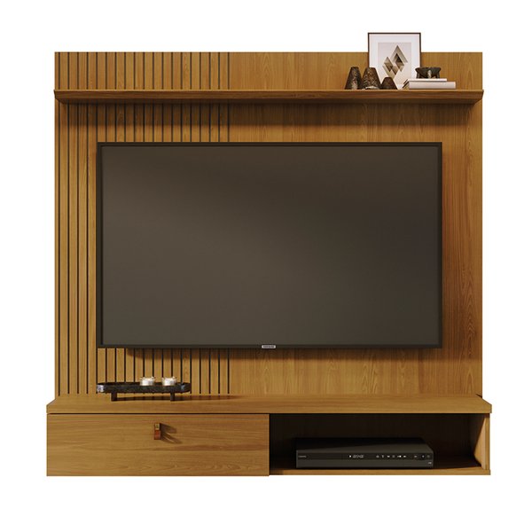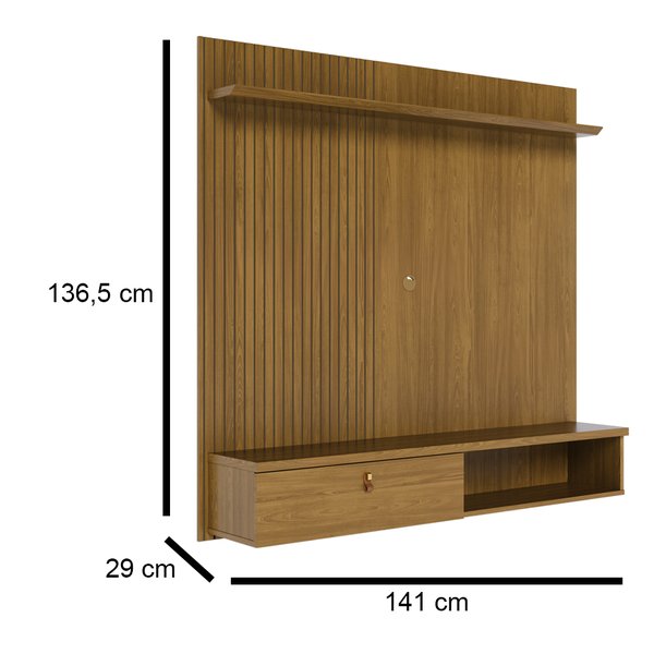 O Painel Íris da 7 Decor oferece design elegante e funcionalidade inteligente em um formato compacto. Ideal para salas menores ou ambientes com estilo contemporâneo, ele conta com porta basculante, acabamento dourado fosco e detalhes que simulam couro natural, trazendo requinte e personalidade ao espaço.