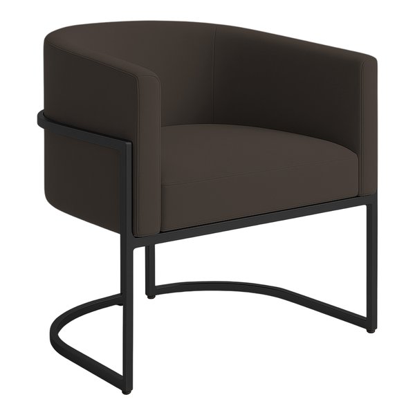 Revestida em tecido boucle, proporciona toque macio e brilho sofisticado, realçando sua presença em qualquer ambiente. Os pés metálicos com pintura preta complementam a elegância da peça, adicionando um detalhe refinado à sua base.