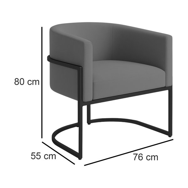 Poltrona Decorativa Luana Veludo Com Pés De Ferro Preto - 7 Decor Cinza Escuro