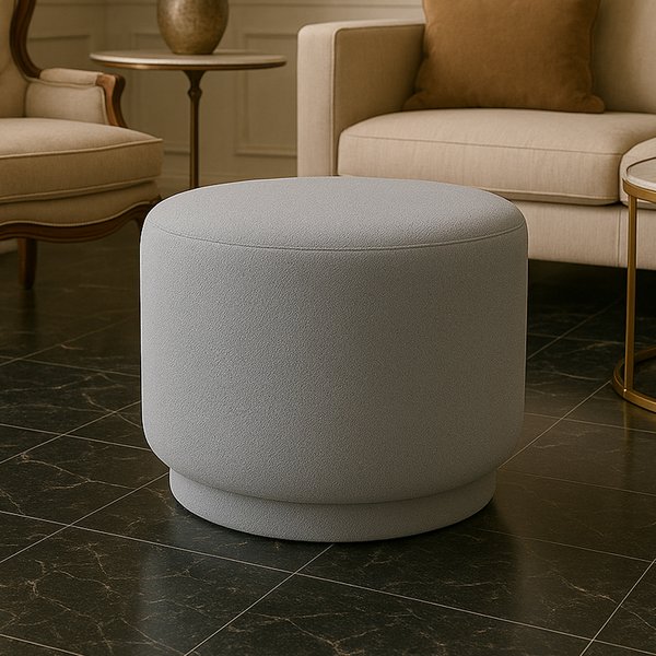 Seu estofamento em tecido boucle confere uma textura sofisticada e agradável ao toque, adicionando um toque de modernidade e aconchego ao ambiente. O boucle, conhecido por sua aparência macia e levemente texturizada, traz um charme especial que transforma o puff em um destaque visual.
