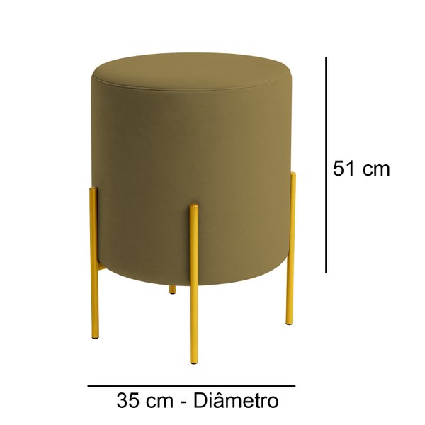 Revestido em tecido Veludo, que confere textura macia e aspecto visual acolhedor, o puff proporciona um toque de sofisticação à decoração. Os pés de ferro com pintura Dourado garantem resistência e um contraste moderno, valorizando ainda mais o design orgânico da peça.