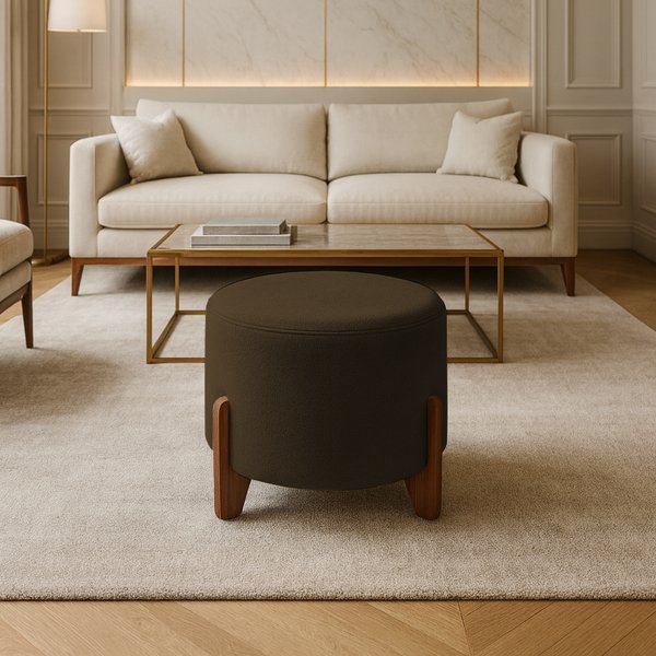 Os pés em madeira maciça de eucalipto garantem estabilidade, resistência e um toque de charme natural ao visual da peça. Com estrutura firme e proporções bem definidas (44 cm de altura e 50 cm de diâmetro), o Puff Veneza é compacto e versátil e funciona como assento extra, apoio para os pés ou até como mesa lateral com bandeja decorativa.